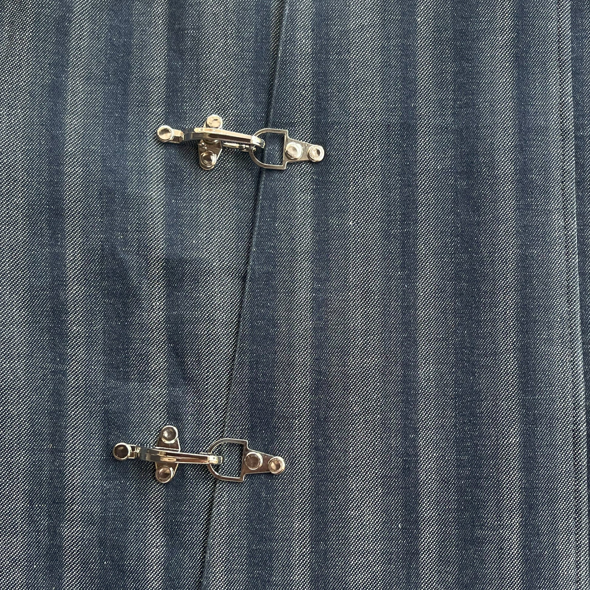 Crafted from 10oz fade striped denim, features sturdy fireman clasps and big buttons. The non-stretch fabric holds its shape with a crisp structure but remains breathable for all-day wear.